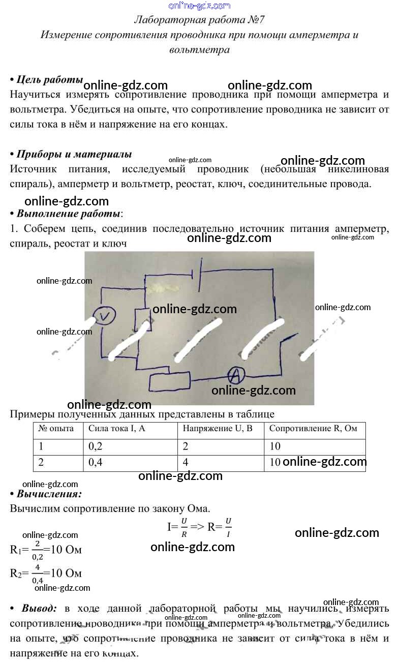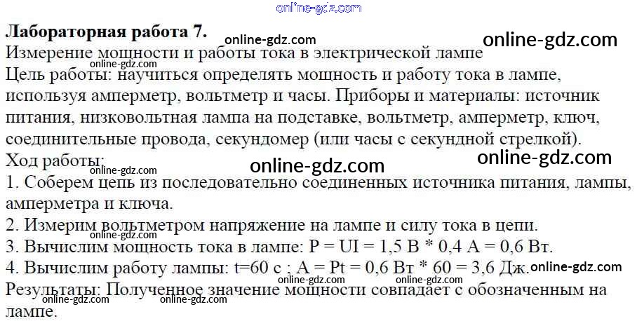 Готовые домашние задания по Физике за 8 класс Учебник Перышкин Вертикаль 2014 - Лабораторные работы Новое издание (бело-красный учебник) ЛР-7