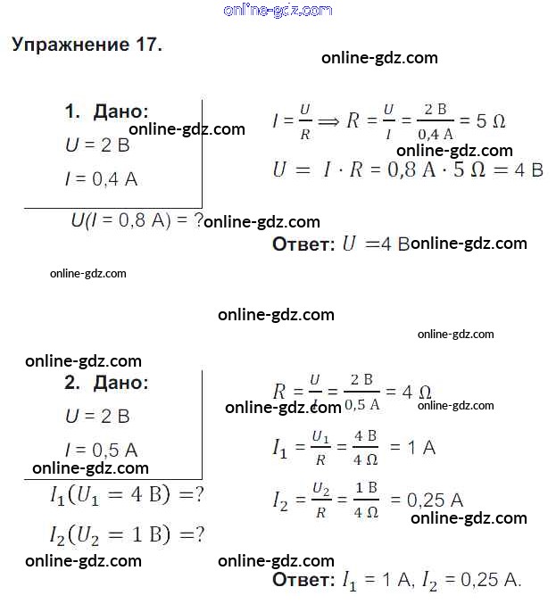 Готовые домашние задания по Физике за 8 класс Учебник Перышкин Вертикаль 2014 - Упражнения Старое издание (синий учебник) 17