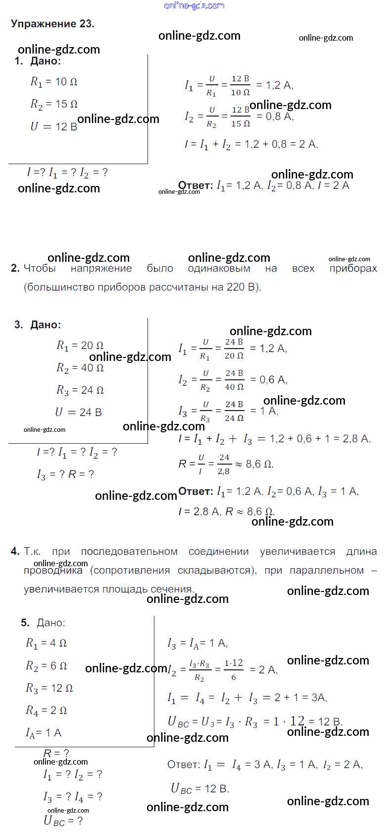 Готовые домашние задания по Физике за 8 класс Учебник Перышкин Вертикаль 2014 - Упражнения Старое издание (синий учебник) 23
