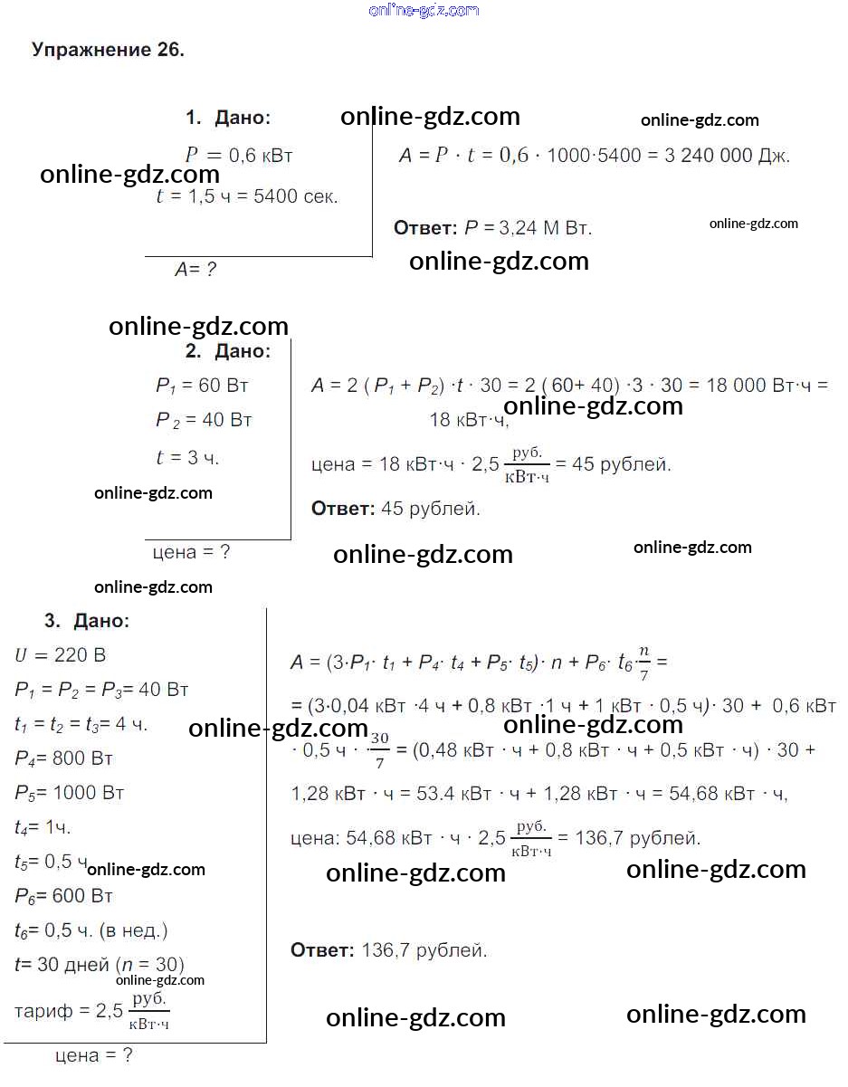 Готовые домашние задания по Физике за 8 класс Учебник Перышкин Вертикаль 2014 - Упражнения Старое издание (синий учебник) 26