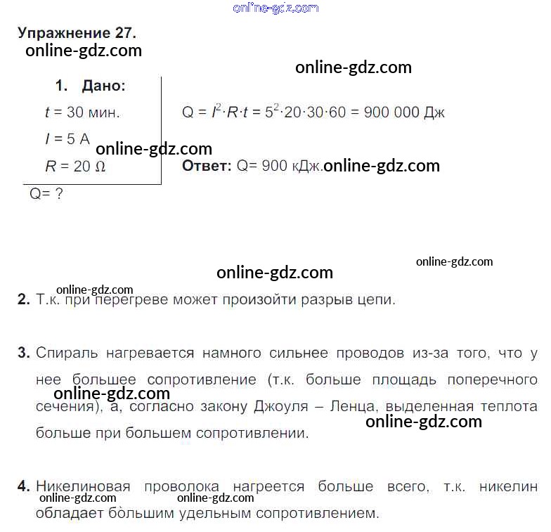Готовые домашние задания по Физике за 8 класс Учебник Перышкин Вертикаль 2014 - Упражнения Старое издание (синий учебник) 27