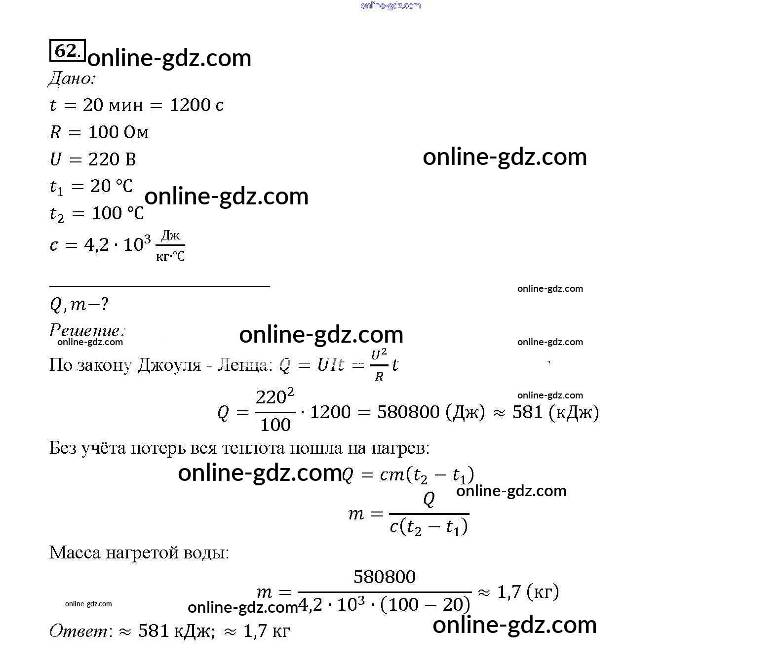Готовые домашние задания по Физике за 8 класс Учебник Перышкин Вертикаль 2014 - Задачи для повторения Новое издание (бело-красный учебник) 62