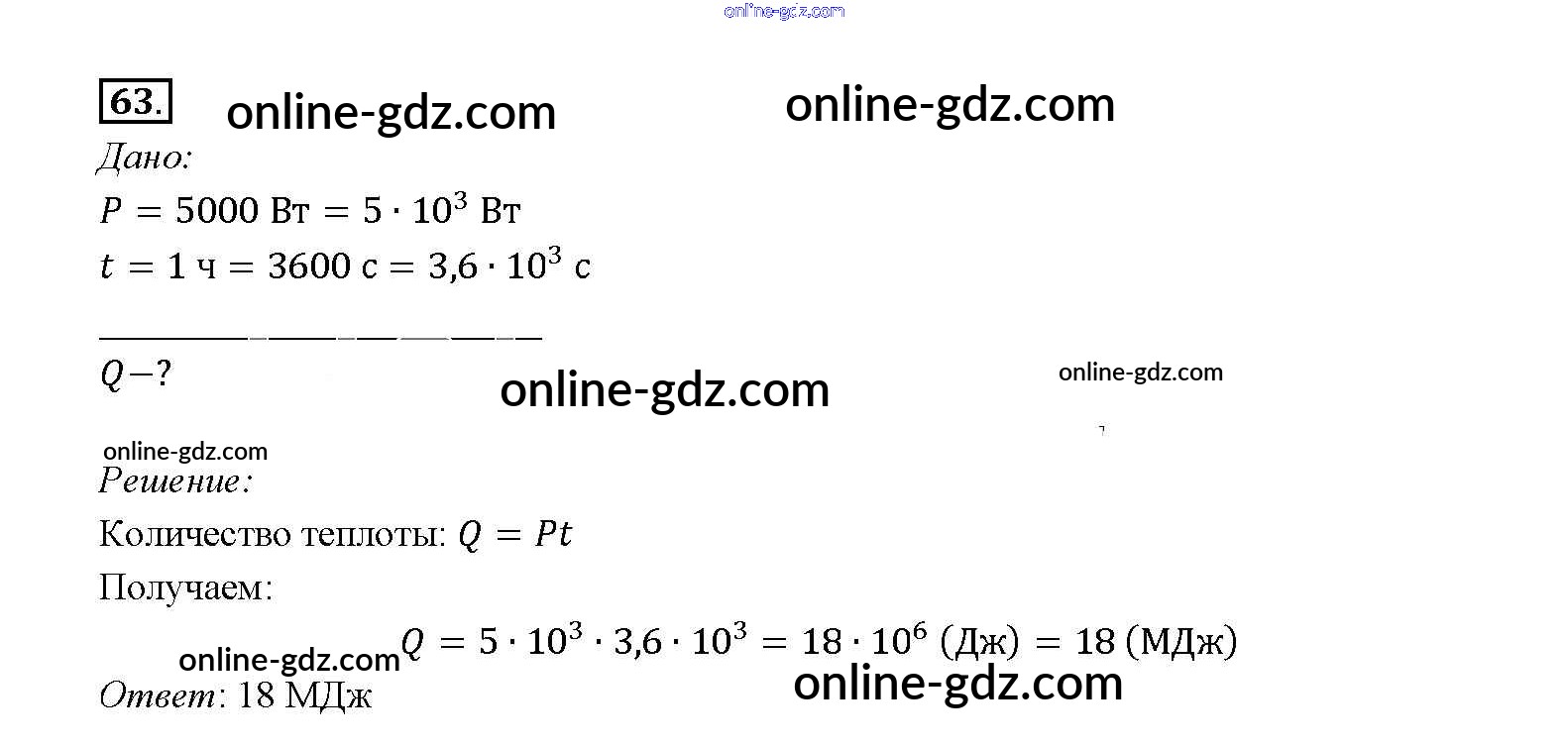 Готовые домашние задания по Физике за 8 класс Учебник Перышкин Вертикаль 2014 - Задачи для повторения Новое издание (бело-красный учебник) 63