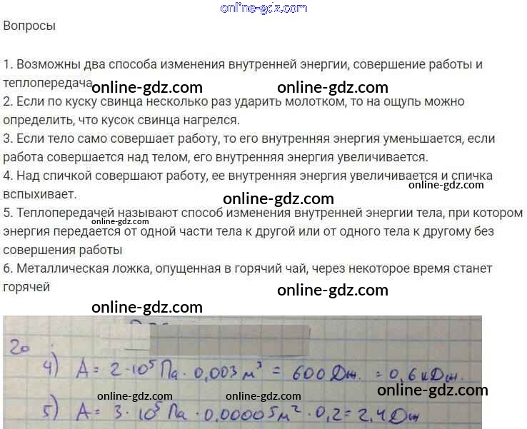 Готовые домашние задания по Физике за 8 класс Учебник Пурышева, Важеевская Вертикаль 2017 - Вопросы к параграфам § 20
