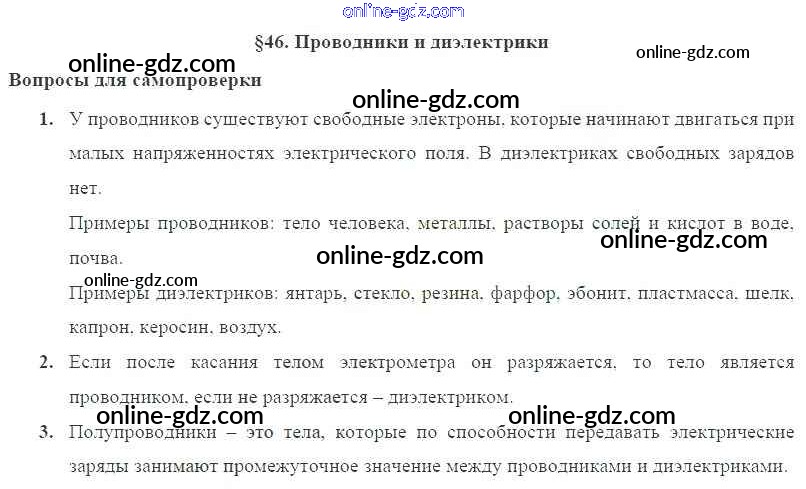 Готовые домашние задания по Физике за 8 класс Учебник Пурышева, Важеевская Вертикаль 2017 - Вопросы к параграфам § 46. Проводники и диэлектрики