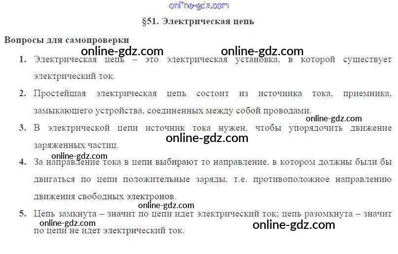Готовые домашние задания по Физике за 8 класс Учебник Пурышева, Важеевская Вертикаль 2017 - Вопросы к параграфам § 51. Электрическая цепь