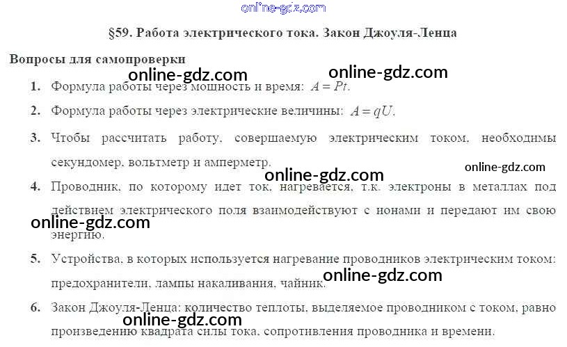 Готовые домашние задания по Физике за 8 класс Учебник Пурышева, Важеевская Вертикаль 2017 - Вопросы к параграфам § 59. Работа электрического тока. Закон Джоуля-Ленца