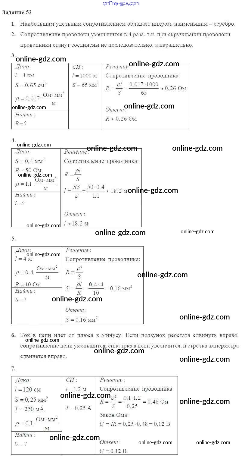 Готовые домашние задания по Физике за 8 класс Учебник Пурышева, Важеевская Вертикаль 2017 - Задания № 52