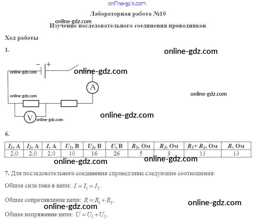 Готовые домашние задания по Физике за 8 класс Учебник Пурышева, Важеевская Вертикаль 2017 - Лабораторные работы ЛР №10. Изучение последовательного соединения проводников