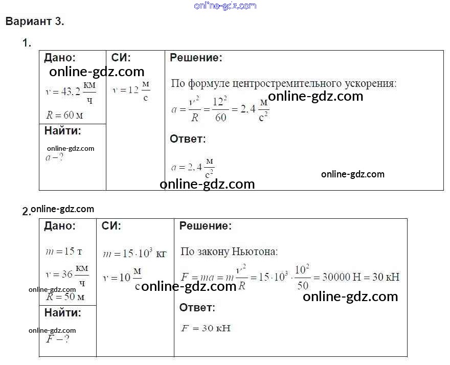 Готовые домашние задания по Физике за 9 класс Дидактические материалы Марон УМК 2019 - СР-10. Варианты Самостоятельные работы 3
