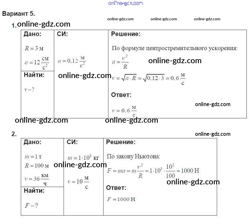 Готовые домашние задания по Физике за 9 класс Дидактические материалы Марон УМК 2019 - СР-10. Варианты Самостоятельные работы 5