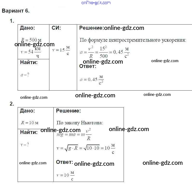 Готовые домашние задания по Физике за 9 класс Дидактические материалы Марон УМК 2019 - СР-10. Варианты Самостоятельные работы 6