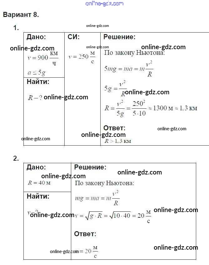 Готовые домашние задания по Физике за 9 класс Дидактические материалы Марон УМК 2019 - СР-10. Варианты Самостоятельные работы 8