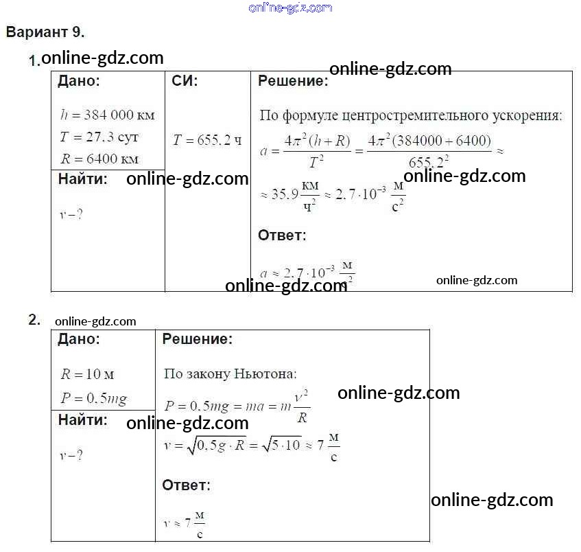Готовые домашние задания по Физике за 9 класс Дидактические материалы Марон УМК 2019 - СР-10. Варианты Самостоятельные работы 9