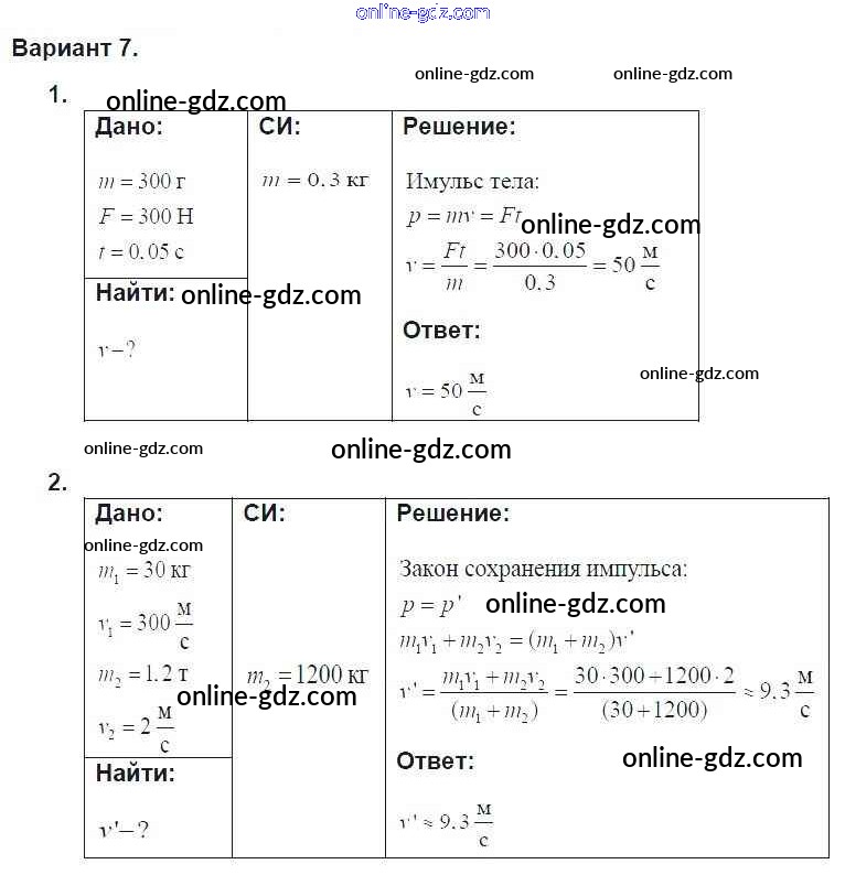 Готовые домашние задания по Физике за 9 класс Дидактические материалы Марон УМК 2019 - СР-11. Варианты Самостоятельные работы 7