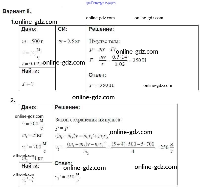 Готовые домашние задания по Физике за 9 класс Дидактические материалы Марон УМК 2019 - СР-11. Варианты Самостоятельные работы 8