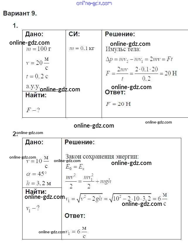 Готовые домашние задания по Физике за 9 класс Дидактические материалы Марон УМК 2019 - СР-11. Варианты Самостоятельные работы 9