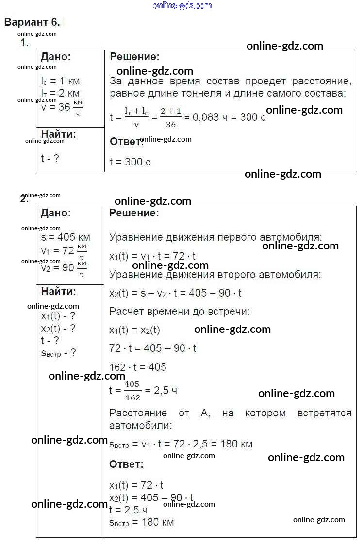 Готовые домашние задания по Физике за 9 класс Дидактические материалы Марон УМК 2019 - СР-2. Варианты Самостоятельные работы 6