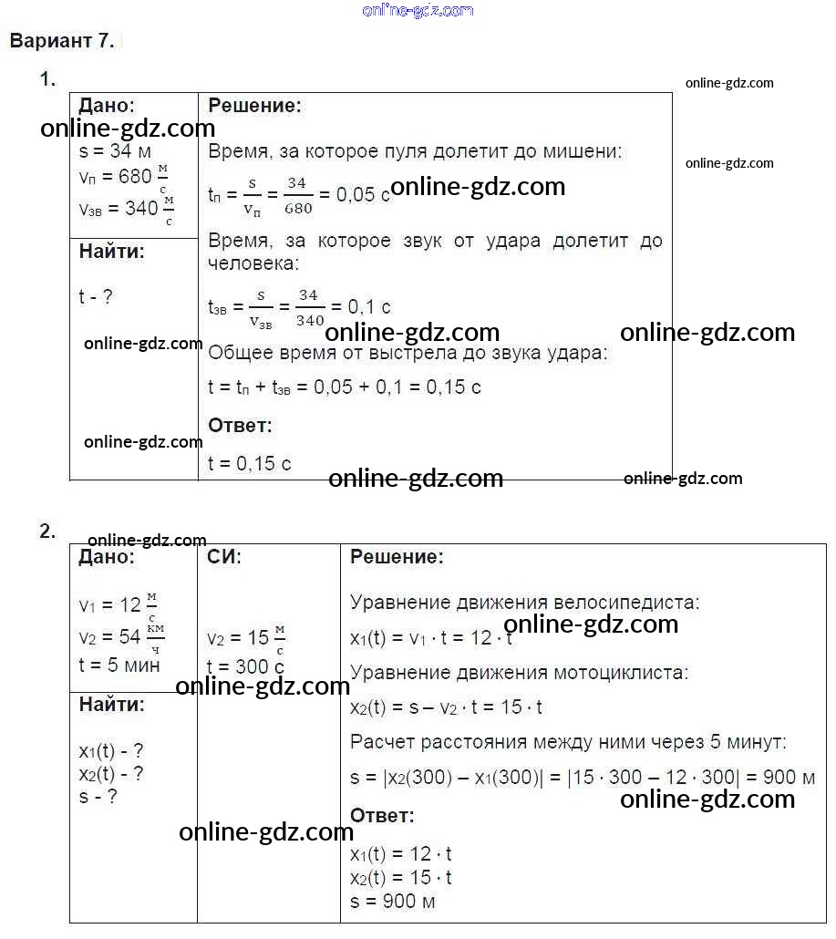 Готовые домашние задания по Физике за 9 класс Дидактические материалы Марон УМК 2019 - СР-2. Варианты Самостоятельные работы 7