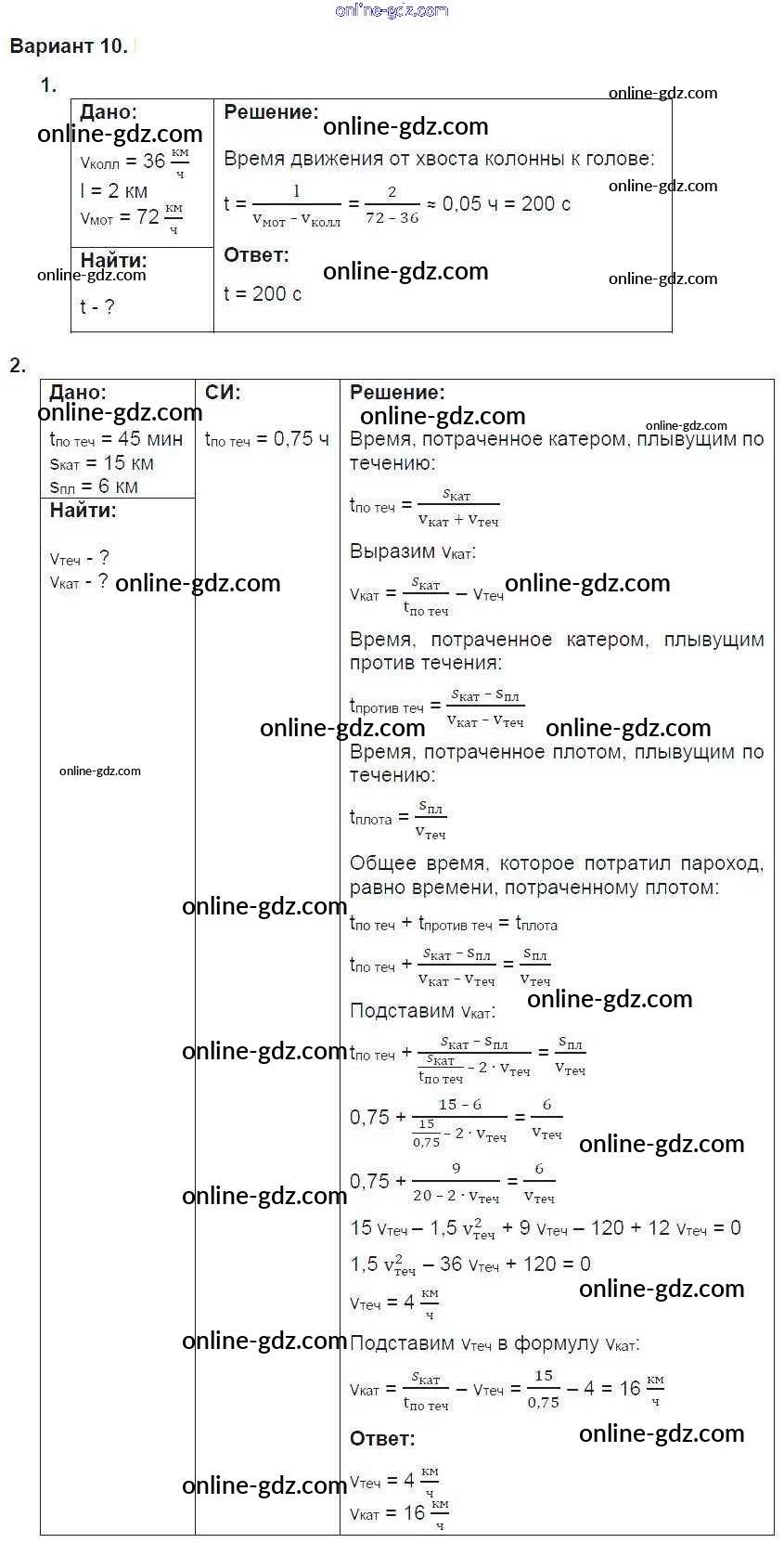 Готовые домашние задания по Физике за 9 класс Дидактические материалы Марон УМК 2019 - СР-4. Варианты Самостоятельные работы 10