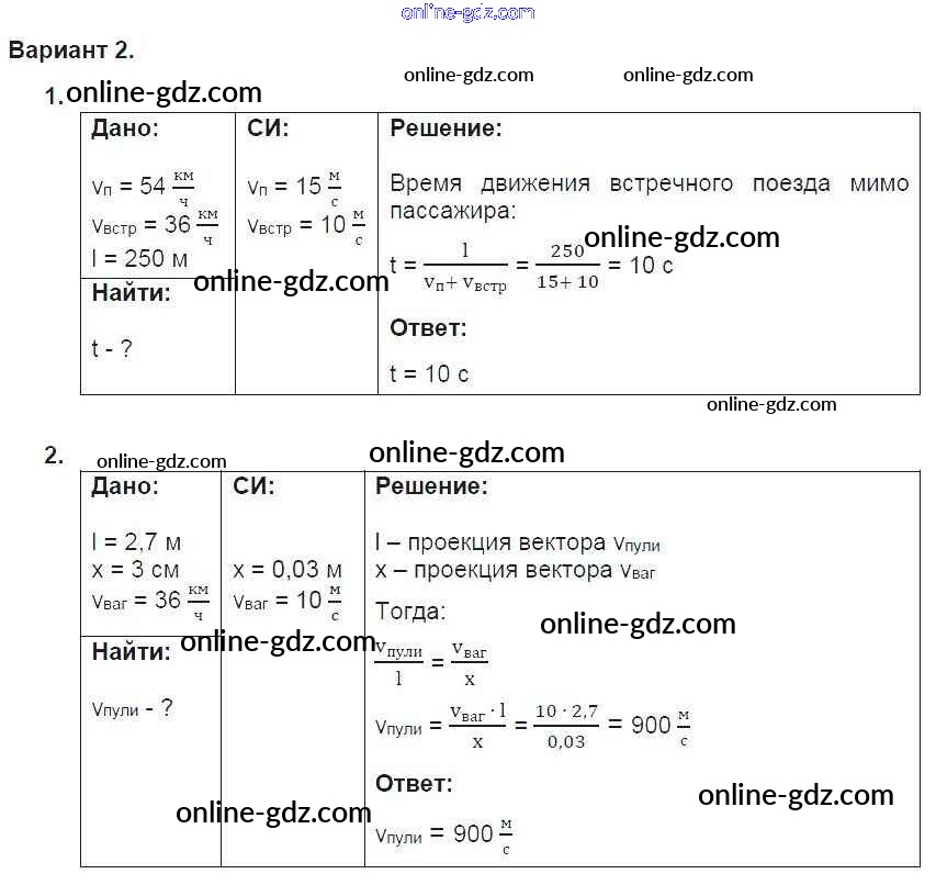 Готовые домашние задания по Физике за 9 класс Дидактические материалы Марон УМК 2019 - СР-4. Варианты Самостоятельные работы 2