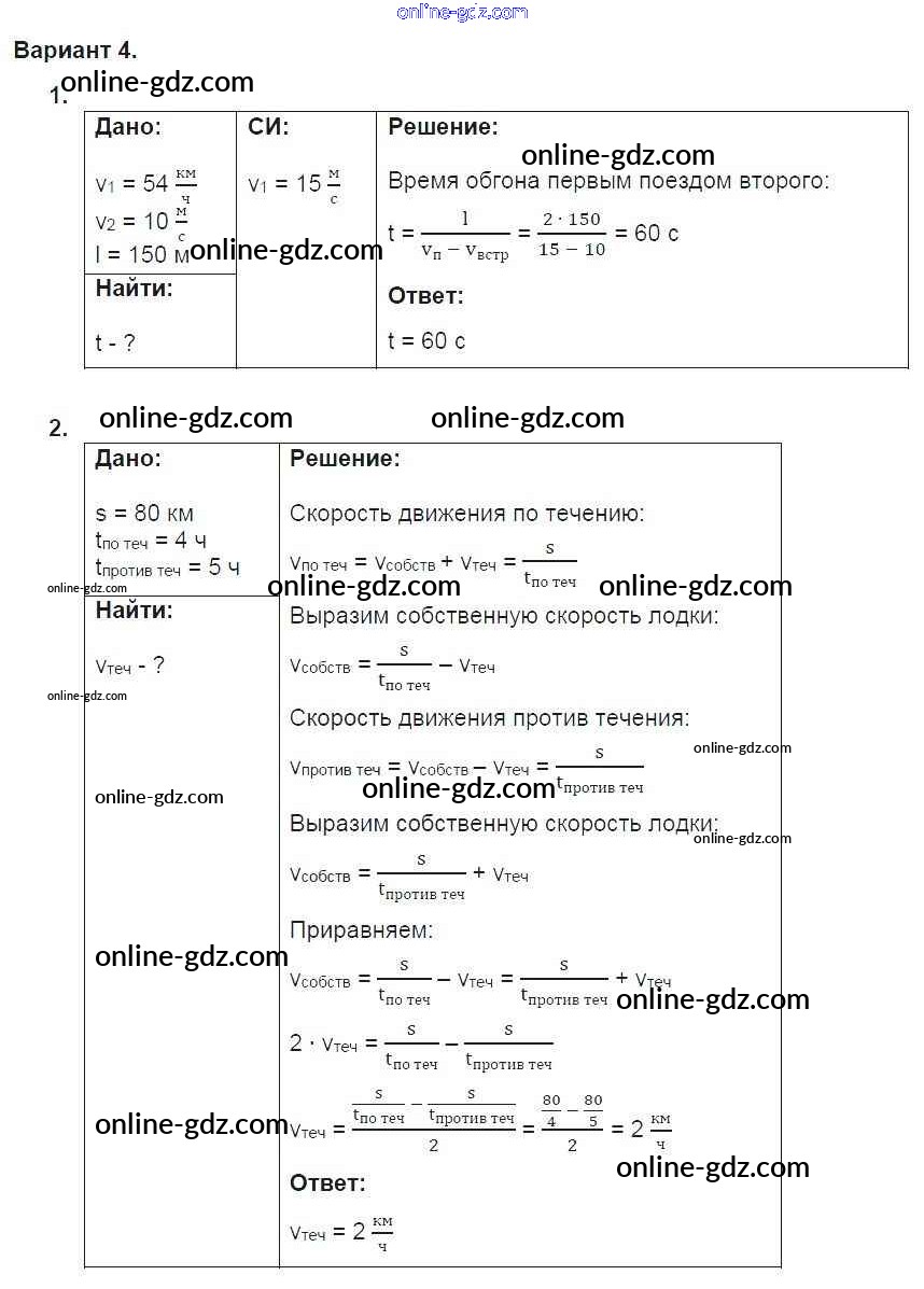 Готовые домашние задания по Физике за 9 класс Дидактические материалы Марон УМК 2019 - СР-4. Варианты Самостоятельные работы 4