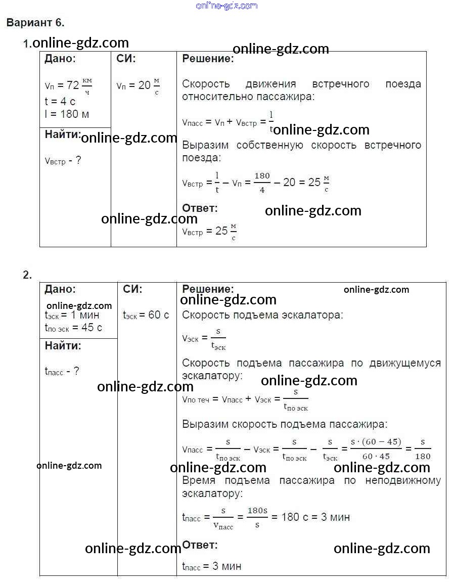 Готовые домашние задания по Физике за 9 класс Дидактические материалы Марон УМК 2019 - СР-4. Варианты Самостоятельные работы 6