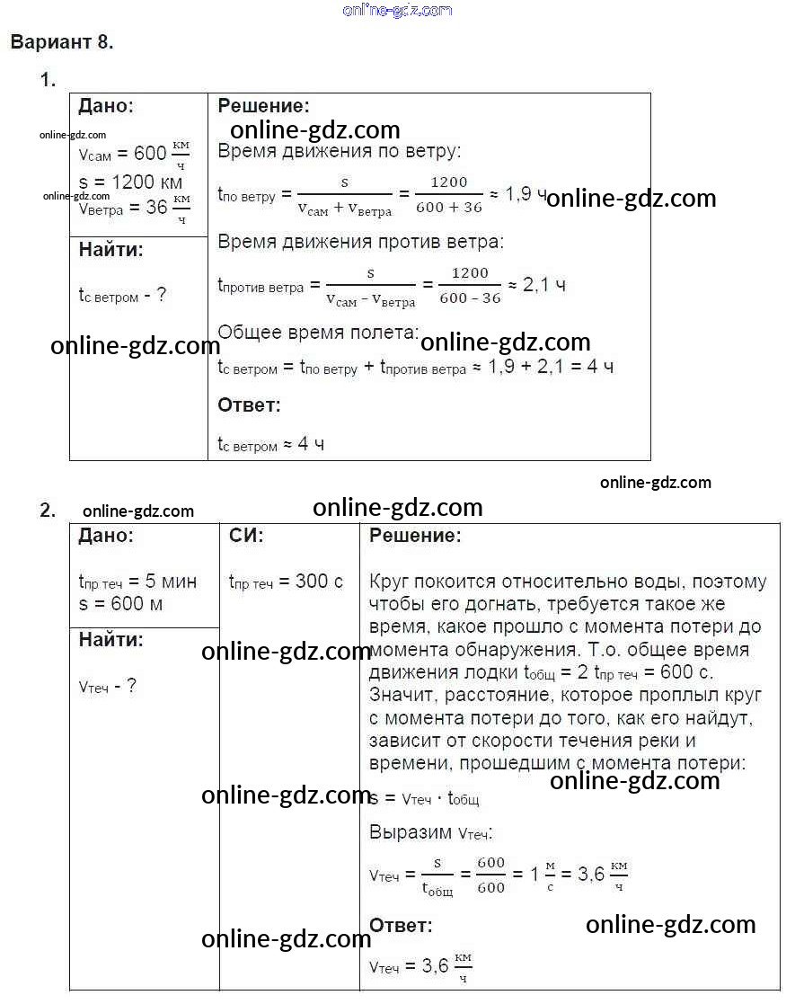 Готовые домашние задания по Физике за 9 класс Дидактические материалы Марон УМК 2019 - СР-4. Варианты Самостоятельные работы 8
