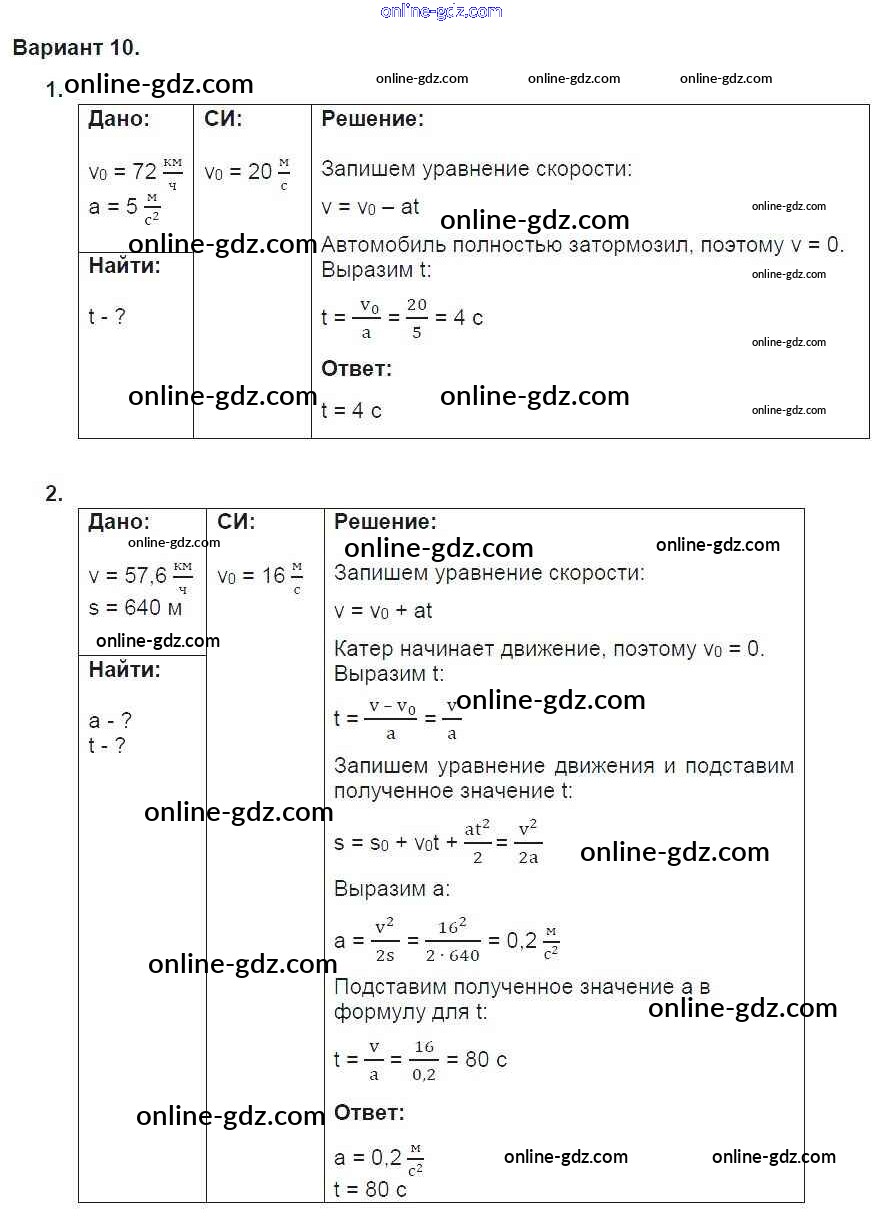 Готовые домашние задания по Физике за 9 класс Дидактические материалы Марон УМК 2019 - СР-5. Варианты Самостоятельные работы 10