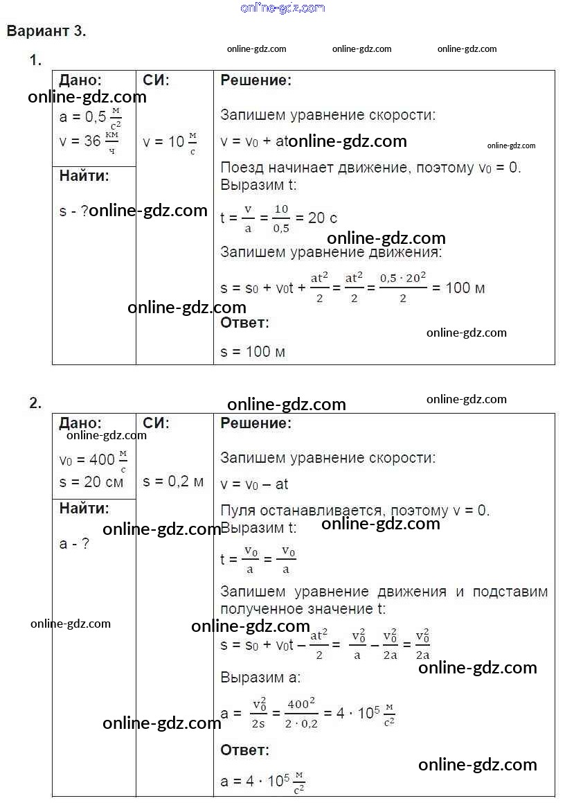 Готовые домашние задания по Физике за 9 класс Дидактические материалы Марон УМК 2019 - СР-5. Варианты Самостоятельные работы 3