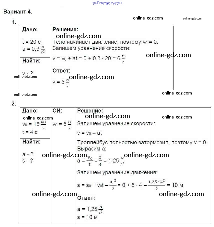 Готовые домашние задания по Физике за 9 класс Дидактические материалы Марон УМК 2019 - СР-5. Варианты Самостоятельные работы 4