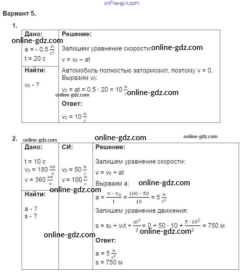 Готовые домашние задания по Физике за 9 класс Дидактические материалы Марон УМК 2019 - СР-5. Варианты Самостоятельные работы 5