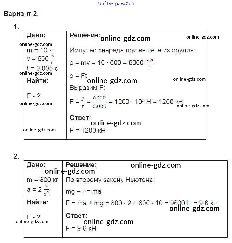 Готовые домашние задания по Физике за 9 класс Дидактические материалы Марон УМК 2019 - СР-7. Варианты Самостоятельные работы 2