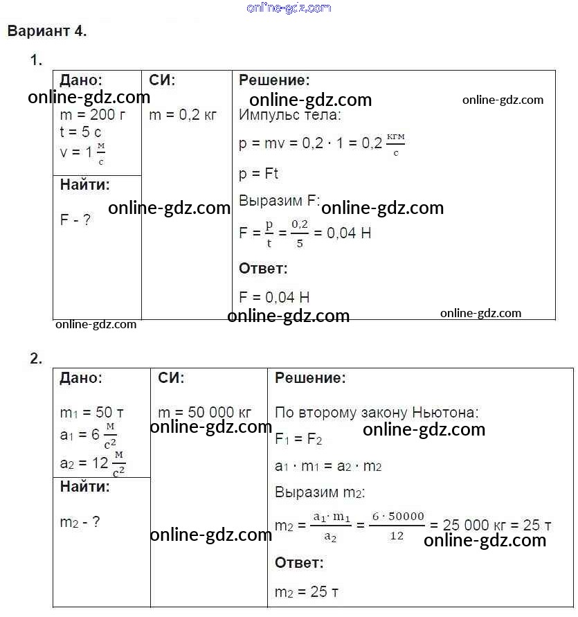 Готовые домашние задания по Физике за 9 класс Дидактические материалы Марон УМК 2019 - СР-7. Варианты Самостоятельные работы 4