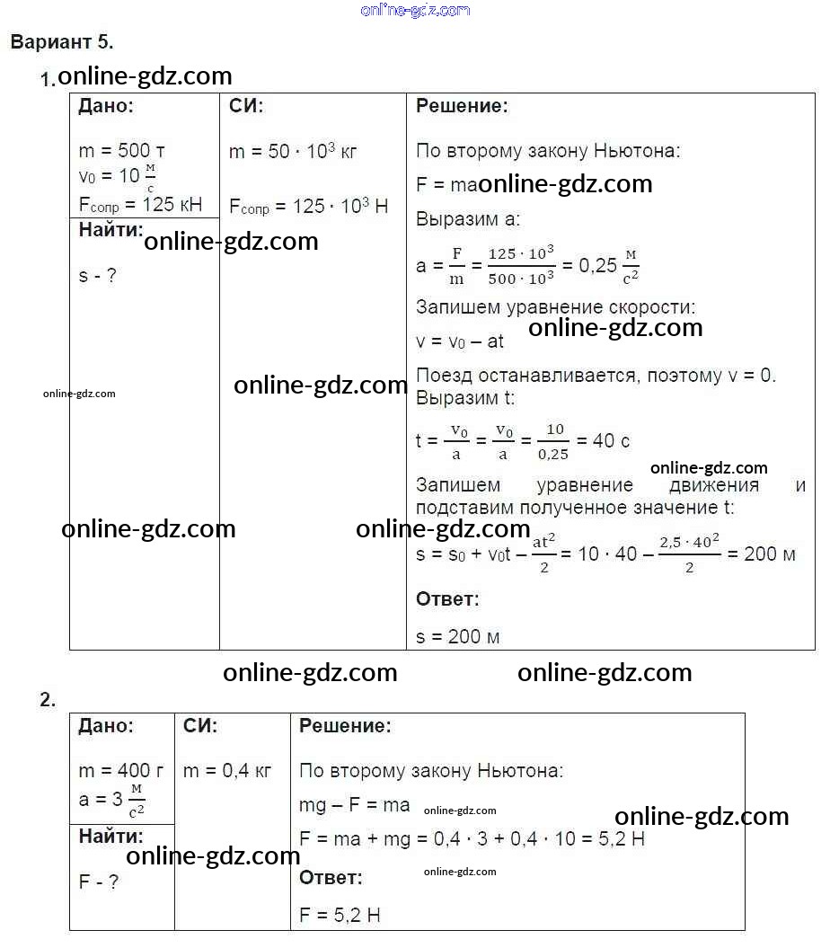 Готовые домашние задания по Физике за 9 класс Дидактические материалы Марон УМК 2019 - СР-7. Варианты Самостоятельные работы 5