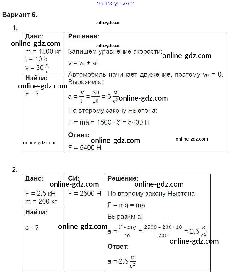 Готовые домашние задания по Физике за 9 класс Дидактические материалы Марон УМК 2019 - СР-7. Варианты Самостоятельные работы 6