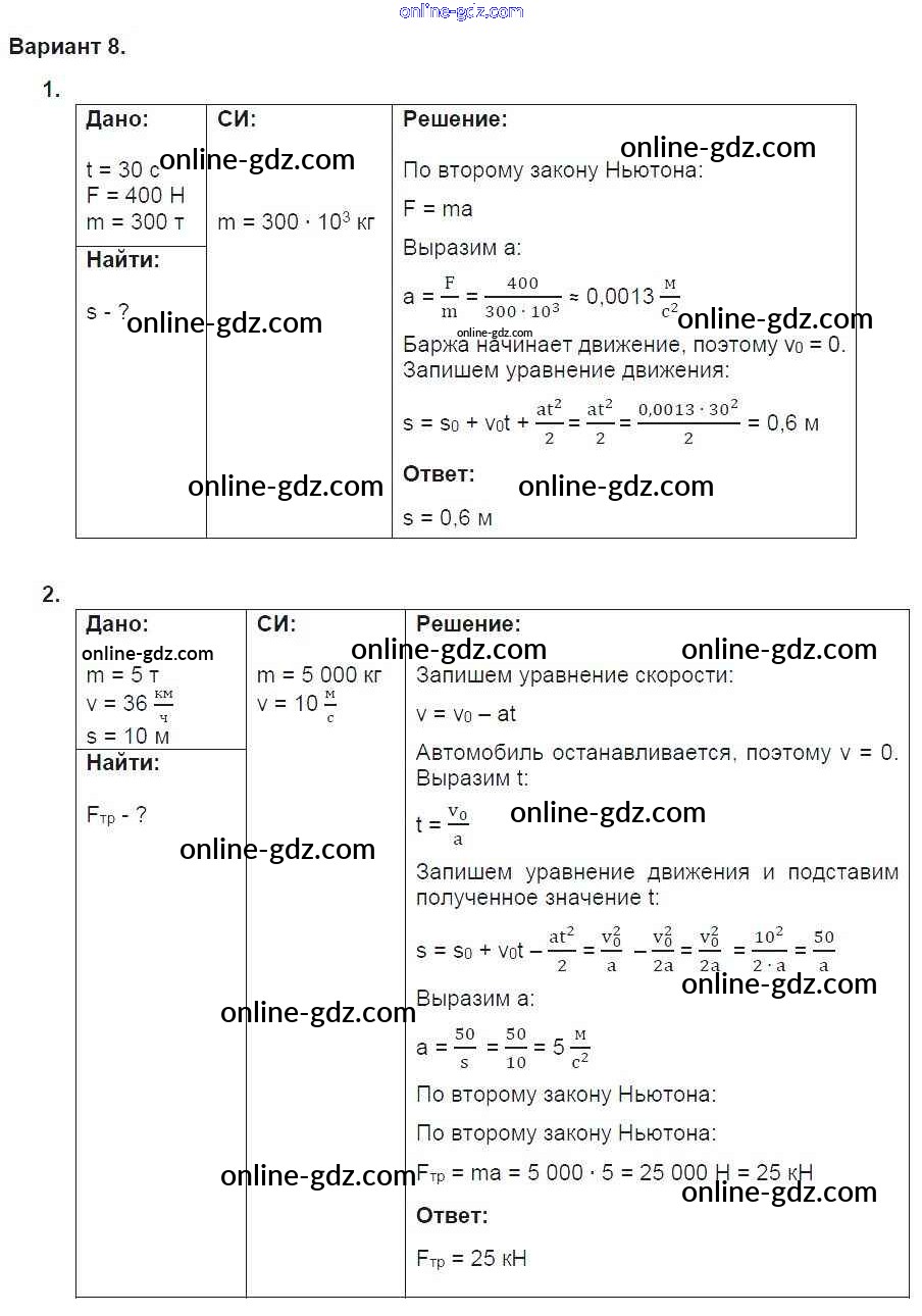 Готовые домашние задания по Физике за 9 класс Дидактические материалы Марон УМК 2019 - СР-7. Варианты Самостоятельные работы 8