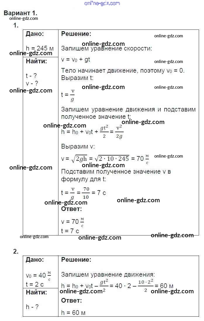 Готовые домашние задания по Физике за 9 класс Дидактические материалы Марон УМК 2019 - СР-8. Варианты Самостоятельные работы 1