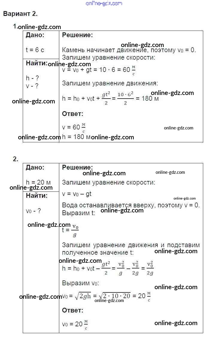 Готовые домашние задания по Физике за 9 класс Дидактические материалы Марон УМК 2019 - СР-8. Варианты Самостоятельные работы 2
