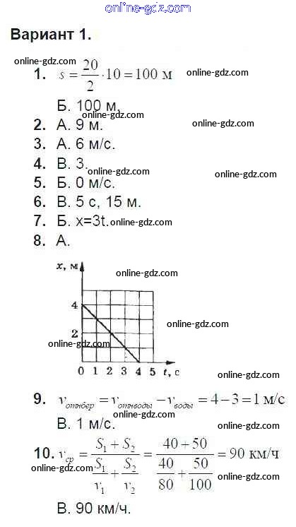 Готовые домашние задания по Физике за 9 класс Дидактические материалы Марон УМК 2019 - Тест 1. Варианты Тесты для самоконтроля 1
