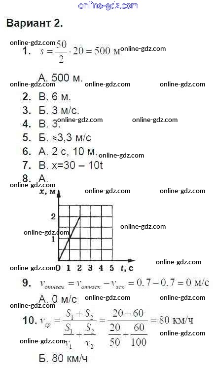 Готовые домашние задания по Физике за 9 класс Дидактические материалы Марон УМК 2019 - Тест 1. Варианты Тесты для самоконтроля 2