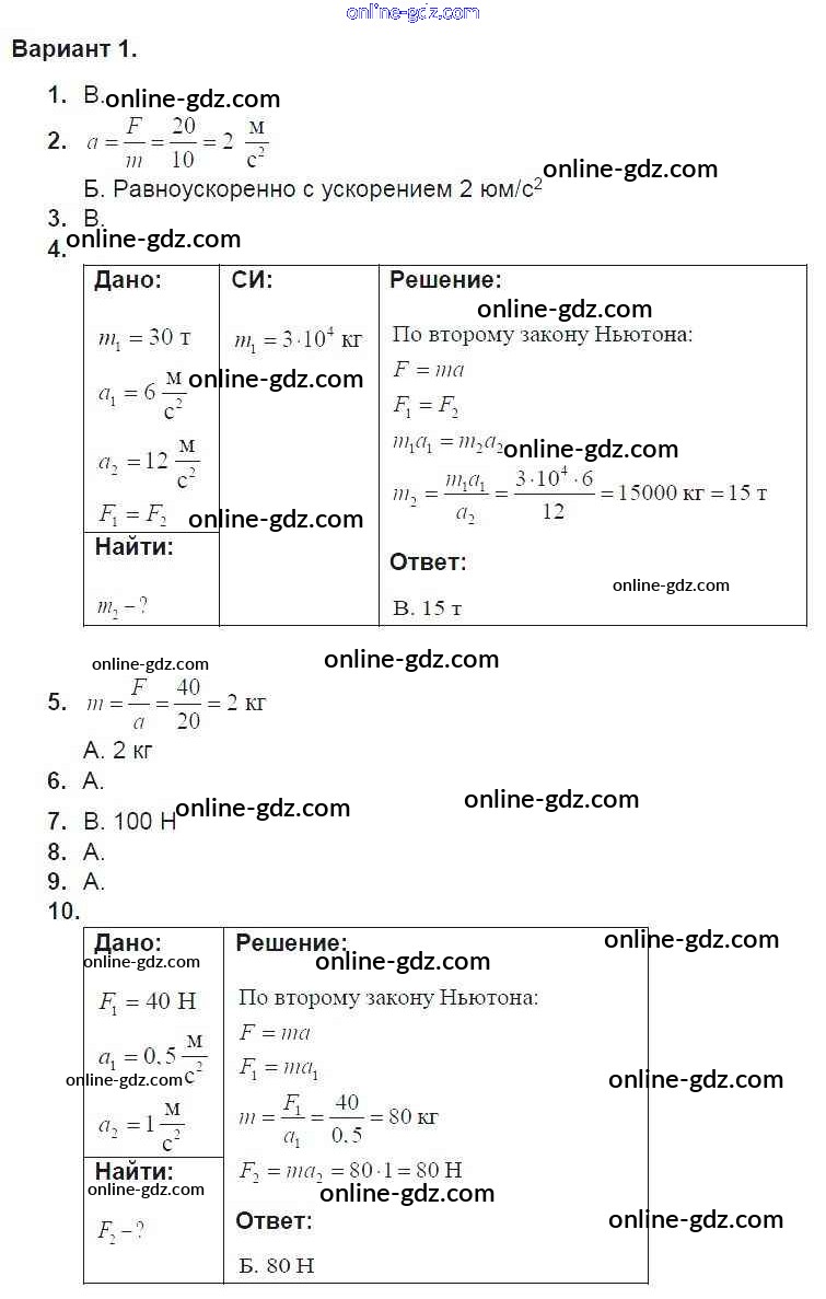 Готовые домашние задания по Физике за 9 класс Дидактические материалы Марон УМК 2019 - Тест 3. Варианты Тесты для самоконтроля 1