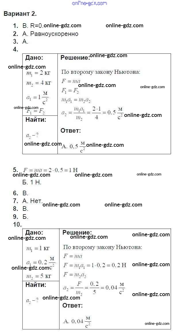 Готовые домашние задания по Физике за 9 класс Дидактические материалы Марон УМК 2019 - Тест 3. Варианты Тесты для самоконтроля 2