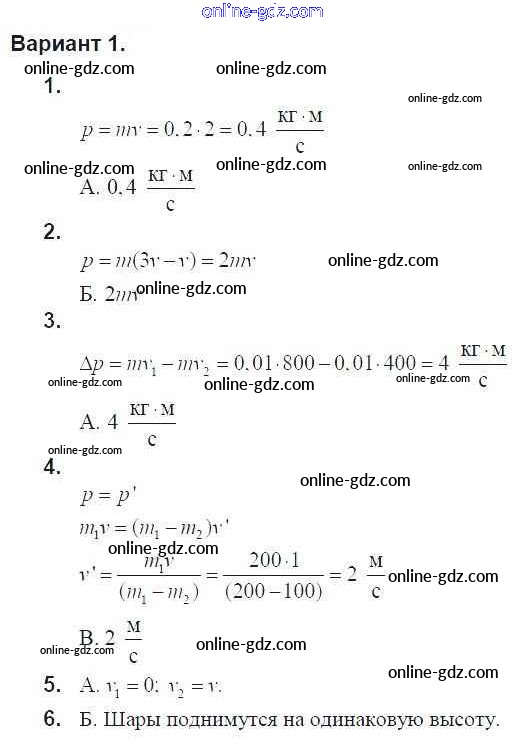 Готовые домашние задания по Физике за 9 класс Дидактические материалы Марон УМК 2019 - Тест 6. Варианты Тесты для самоконтроля 1