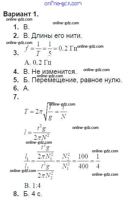 Готовые домашние задания по Физике за 9 класс Дидактические материалы Марон УМК 2019 - Тест 7. Варианты Тесты для самоконтроля 1