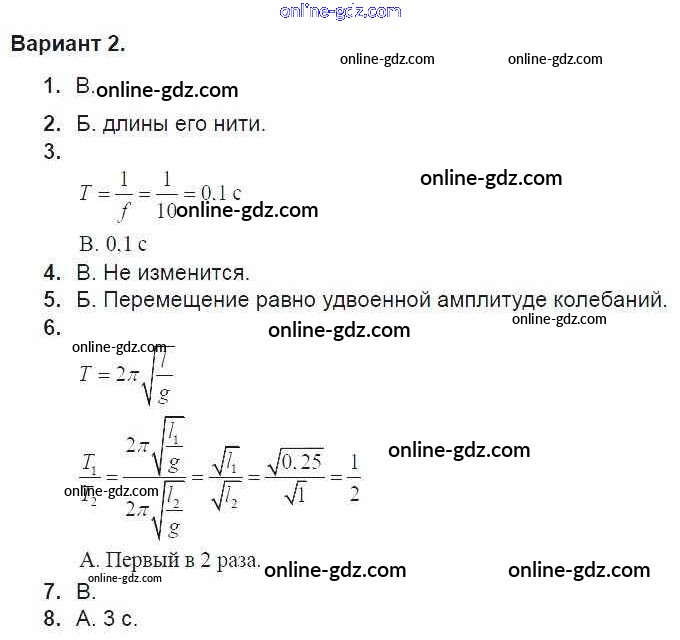 Готовые домашние задания по Физике за 9 класс Дидактические материалы Марон УМК 2019 - Тест 7. Варианты Тесты для самоконтроля 2