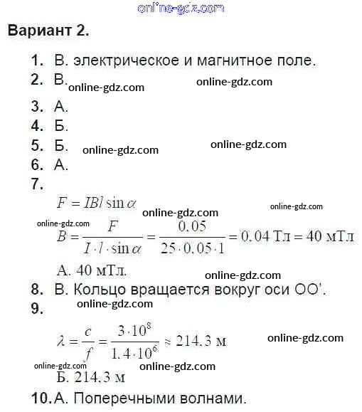 Готовые домашние задания по Физике за 9 класс Дидактические материалы Марон УМК 2019 - Тест 9. Варианты Тесты для самоконтроля 2