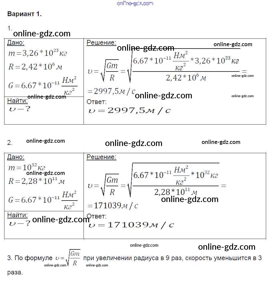 Готовые домашние задания по Физике за 9 класс Контрольные и самостоятельные работы Громцева УМК 2017 - СР-23. Варианты Самостоятельные работы 1