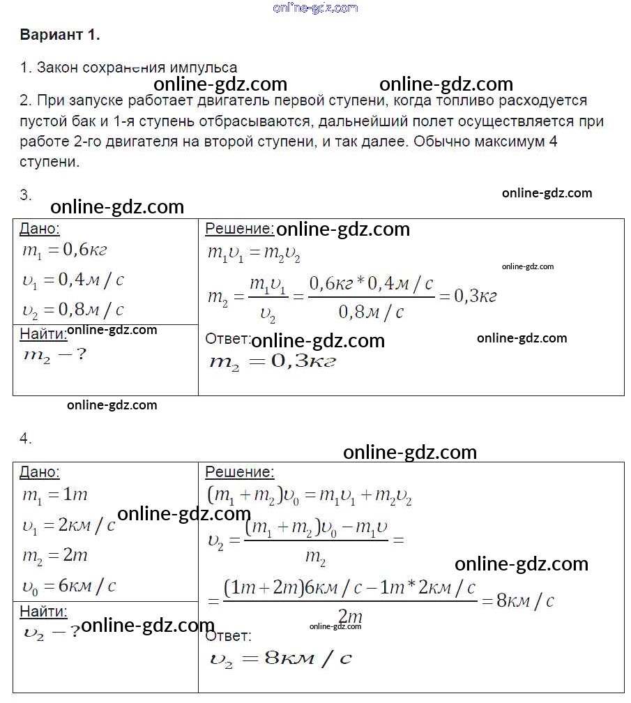 Готовые домашние задания по Физике за 9 класс Контрольные и самостоятельные работы Громцева УМК 2017 - СР-26. Варианты Самостоятельные работы 1
