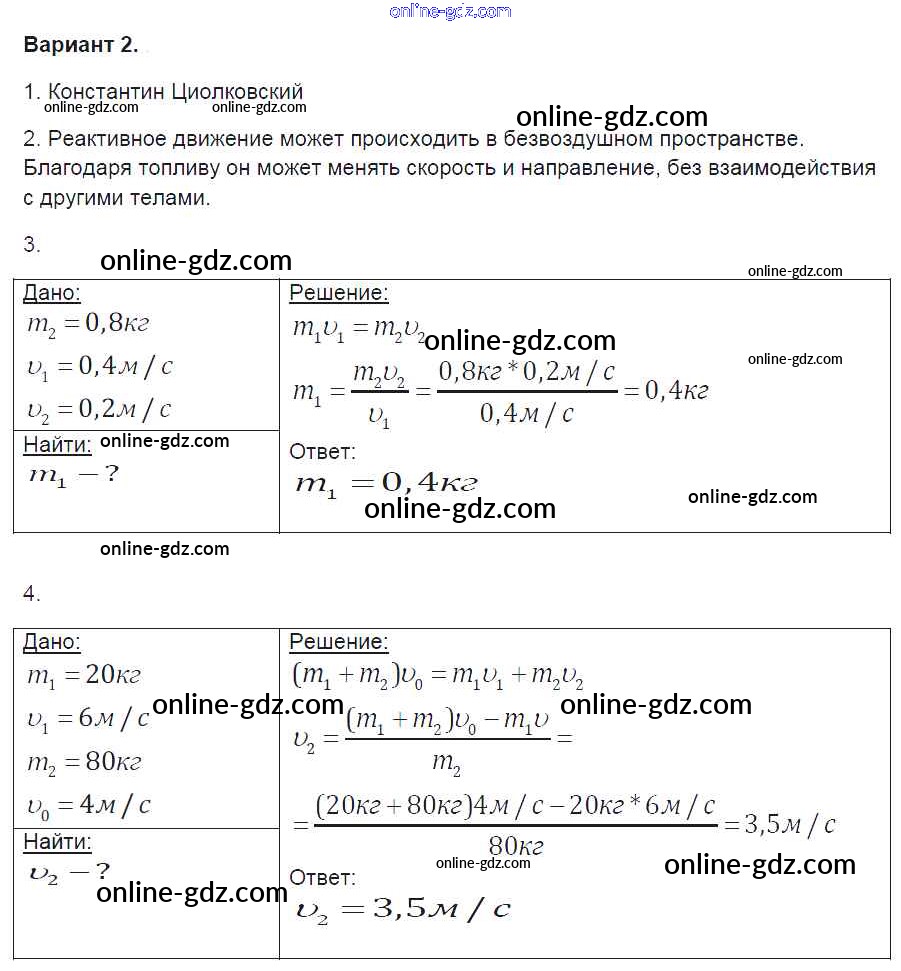 Готовые домашние задания по Физике за 9 класс Контрольные и самостоятельные работы Громцева УМК 2017 - СР-26. Варианты Самостоятельные работы 2
